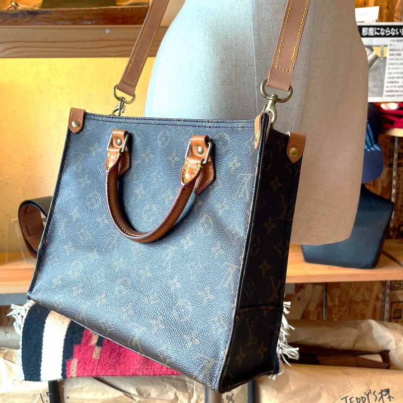 ブランドバッグのモノグラム生地を再利用したトートバッグ型のショルダーバッグ。 内…
